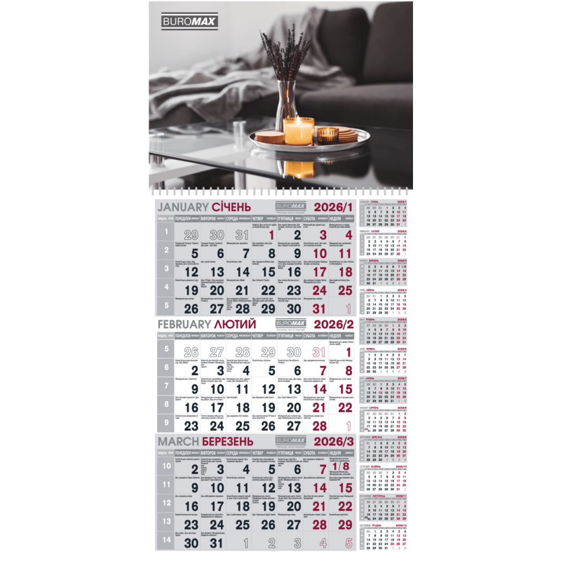 Календарь квартальный настенный 2026 на 1 пружину Buromax (BM.2106.9)